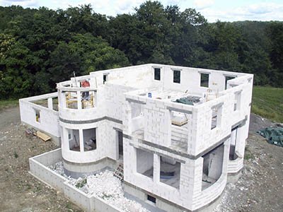 Фундамент выполнен и можно приступать к сооружению стен. Блоки закрепляются между собой, в качестве связующего используют качественный бетонный раствор или специальный клей для газобетонных блоков. Ответственный этап – укладка первых несколько рядов блоков. Рекомендуется эти ряды класть на раствор. Блоки должны быть идеально подогнаны. Такие действия придадут качество всей дальнейшей конструкции.